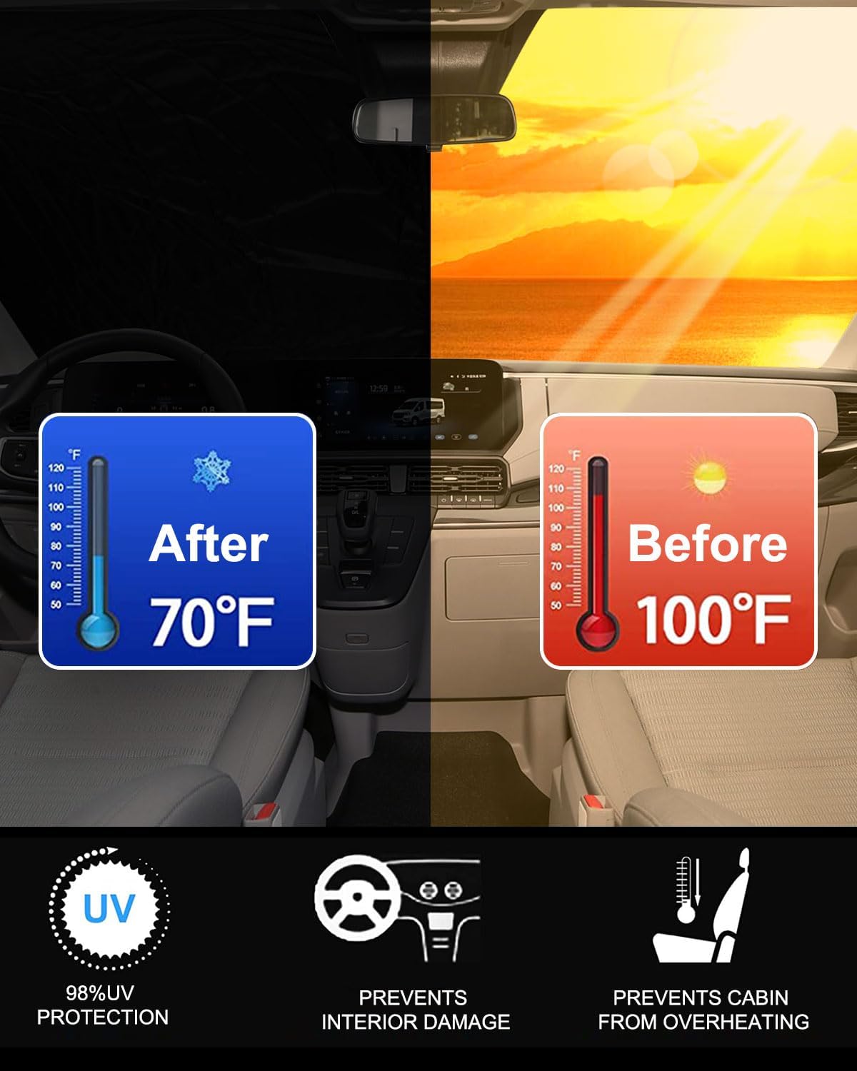 - 【PERFECT FOR】Ford Transit sun shade perfect for Ford Transit 2015 2016 2017 2018 2019 2020 2021 2022 2023 2024 2025. It provides full windshield coverage