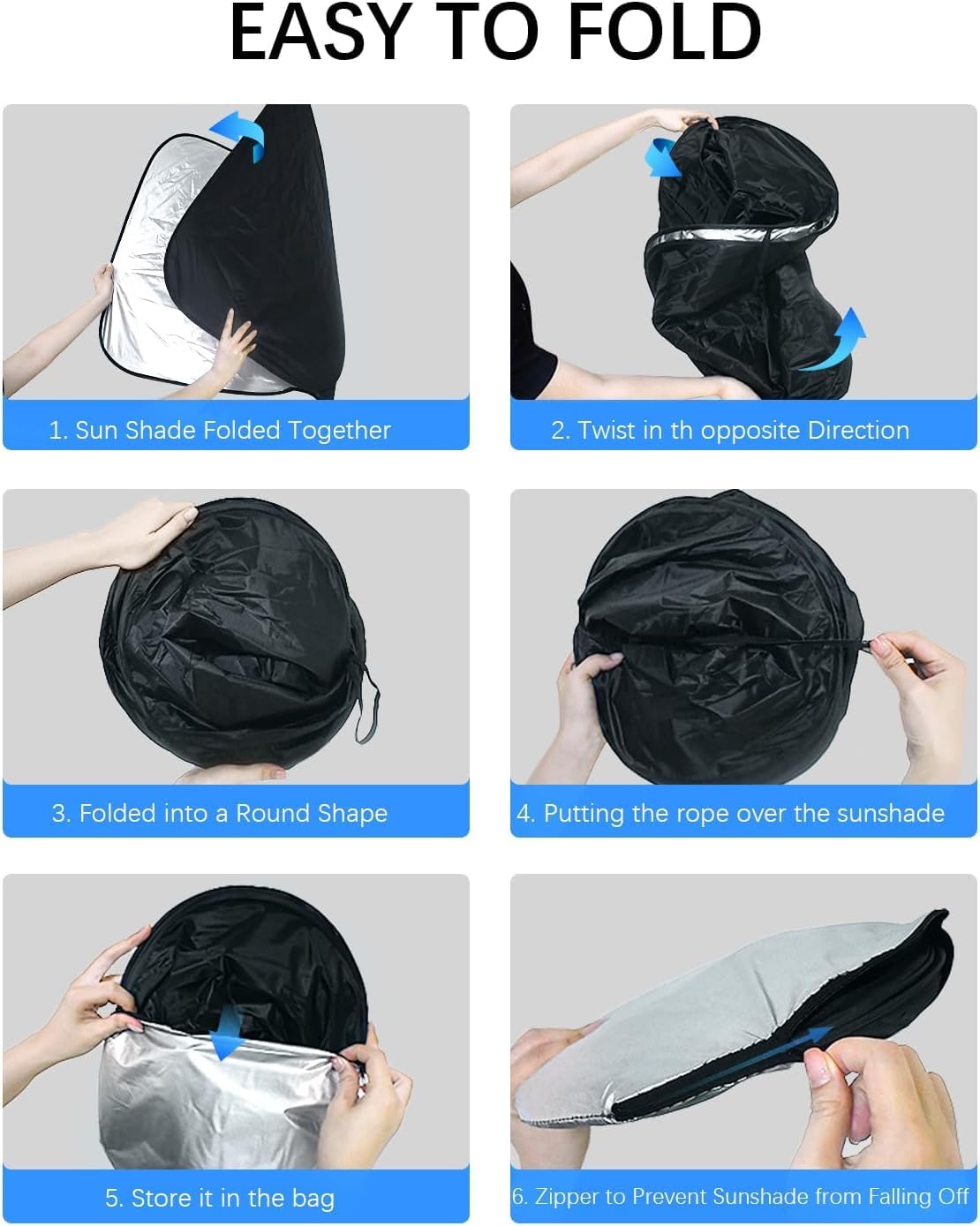 - 【EASY TO FOLD】Ford Transit sunshade features a collapsible design that pops up and folds easily. You can easily tuck it into your car door pocket. Ensure it takes up little space in the car when not in use