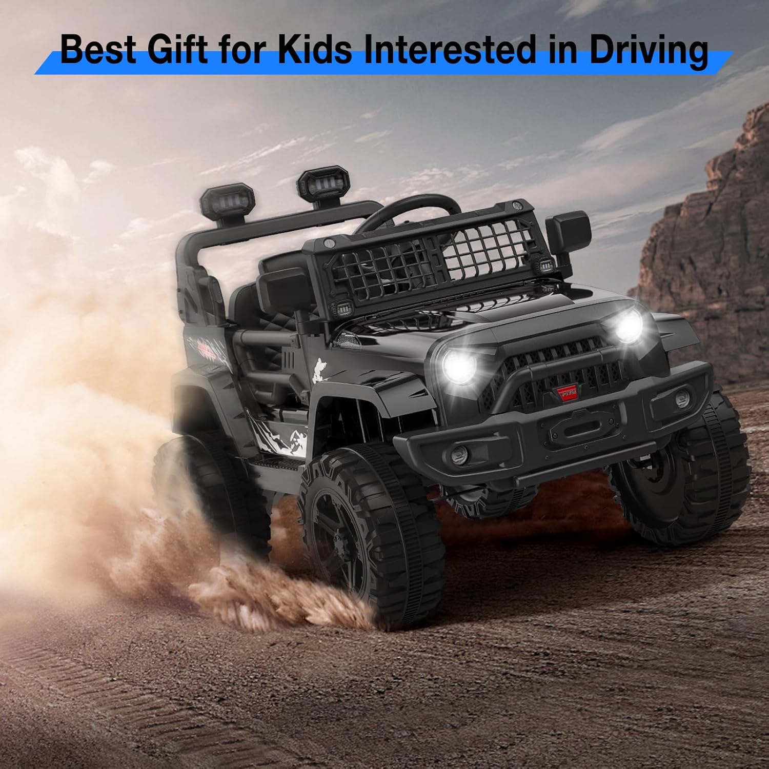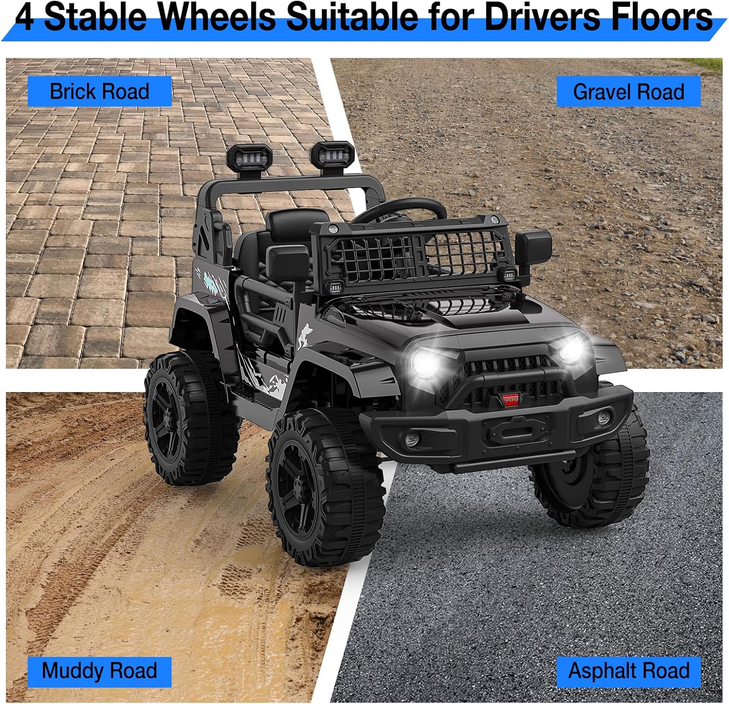 • ⚡ 12V Power & All-Terrain Performance: High-torque 12V motor with puncture-proof tires conquers grass/concrete/driveways. LED headlights ensure nighttime visibility.