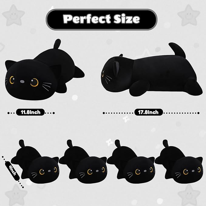 - Comforting Companion: The black cat plush toy provides warmth and comfort during naps and bedtime; allowing your child to drift into dreamland with their favorite cuddly and soft plush companions.