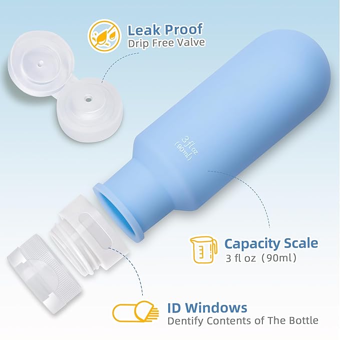 - Leak-proof Design:Leak Proof Silicone Squeezable travel size toiletries prevents liquid leakage or spillage, offers protection to your luggage and cloths.
