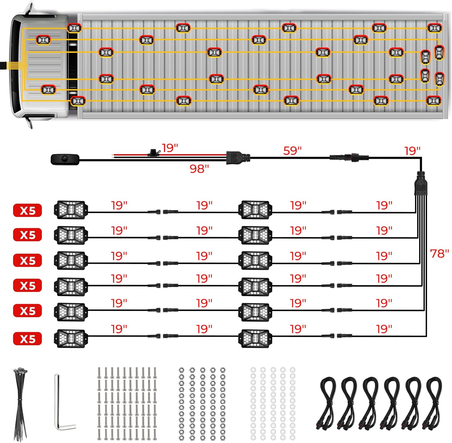 - 【Saving Battery Power Switch】Our truck rock lights comes with effectively saving battery power switch, you can activate or deactivate them as required, helping to reduce unnecessary battery consumption