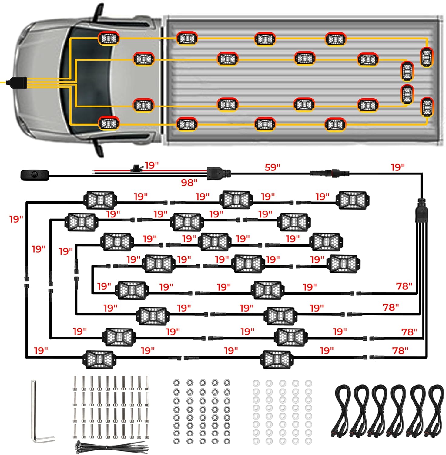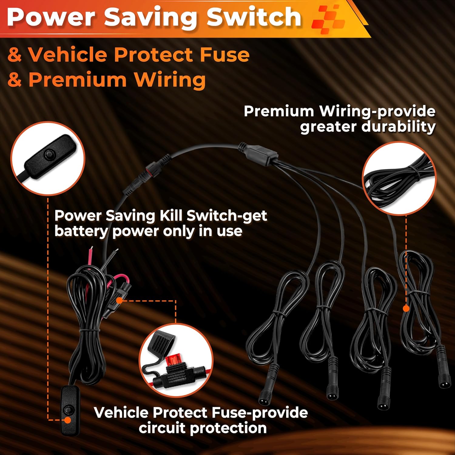 - 【Saving Battery Power Switch】Our truck rock lights comes with effectively saving battery power switch, you can activate or deactivate them as required, helping to reduce unnecessary battery consumption