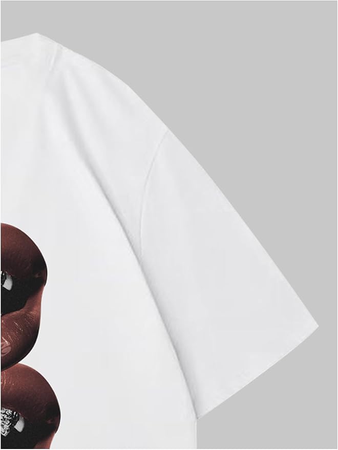 Verdusa Women's Lips Print Graphic Tees Y2k T Shirts Summer Crew Neck Vintage Going Out Tops