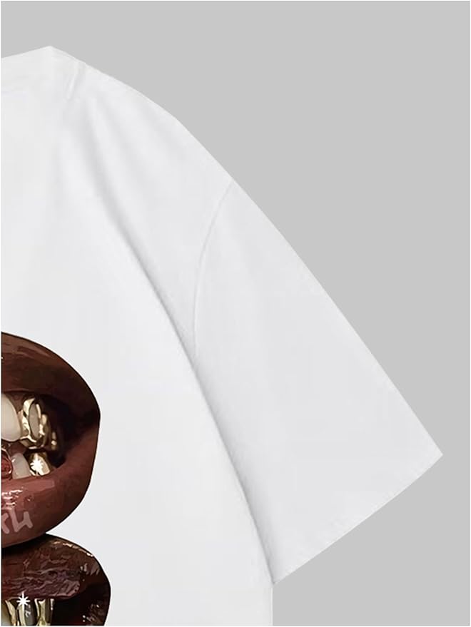 Verdusa Women's Lips Print Graphic Tees Y2k T Shirts Summer Crew Neck Vintage Going Out Tops