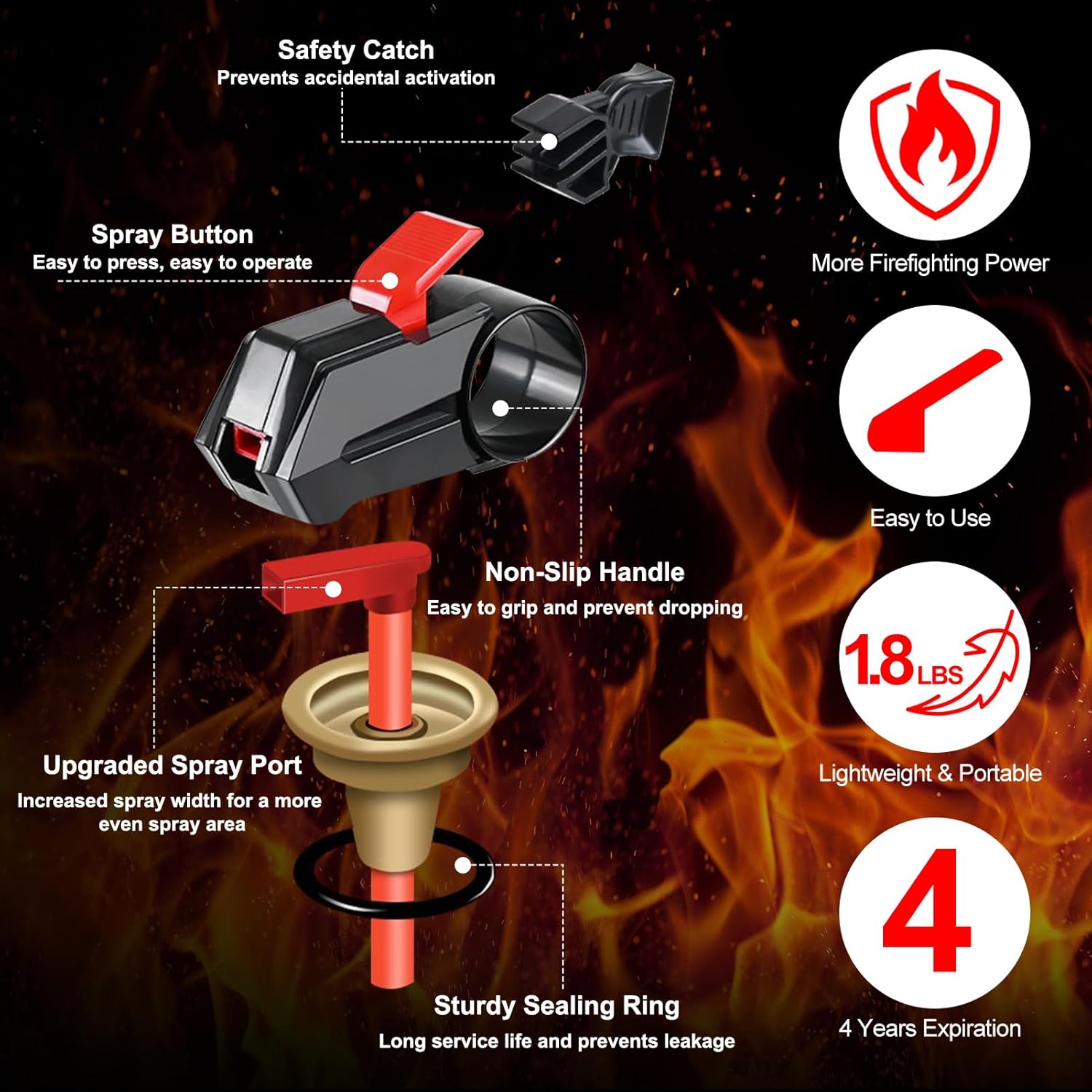 - Portable Mini Fire Extinguisher for Easy Carrying: Ultra-portable fire sprayer with a compact design for easy storage and instant access in kitchens, vehicles, garages, and high-risk zones, ensuring preparedness for any situation