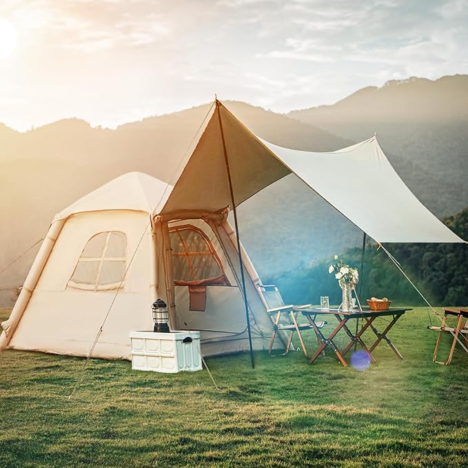 - 【Convenient Design】 This portable glamping tent comes with a waterproof carrying bag. You can use the carrying bag for storage or carrying. The interior of the inflatable tent also allows you to hang lights and has a storage bag for items such as mobile phones