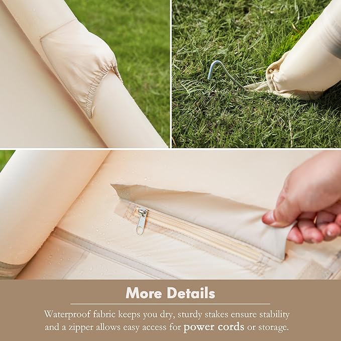 - 【Oxford Fabric】 The outdoor air tent is made of 210D high-density oxford fabric combined with a fine PU coating to meet your rainproof needs, with a waterproof rating of 3000mm. Excellent UV protection, comfortable and breathable. However, it is not recommended to use the tent in bad conditions such as heavy rain or blizzards. P.S.: Be sure to bring a waterproof cover when you use it in rainy days.
