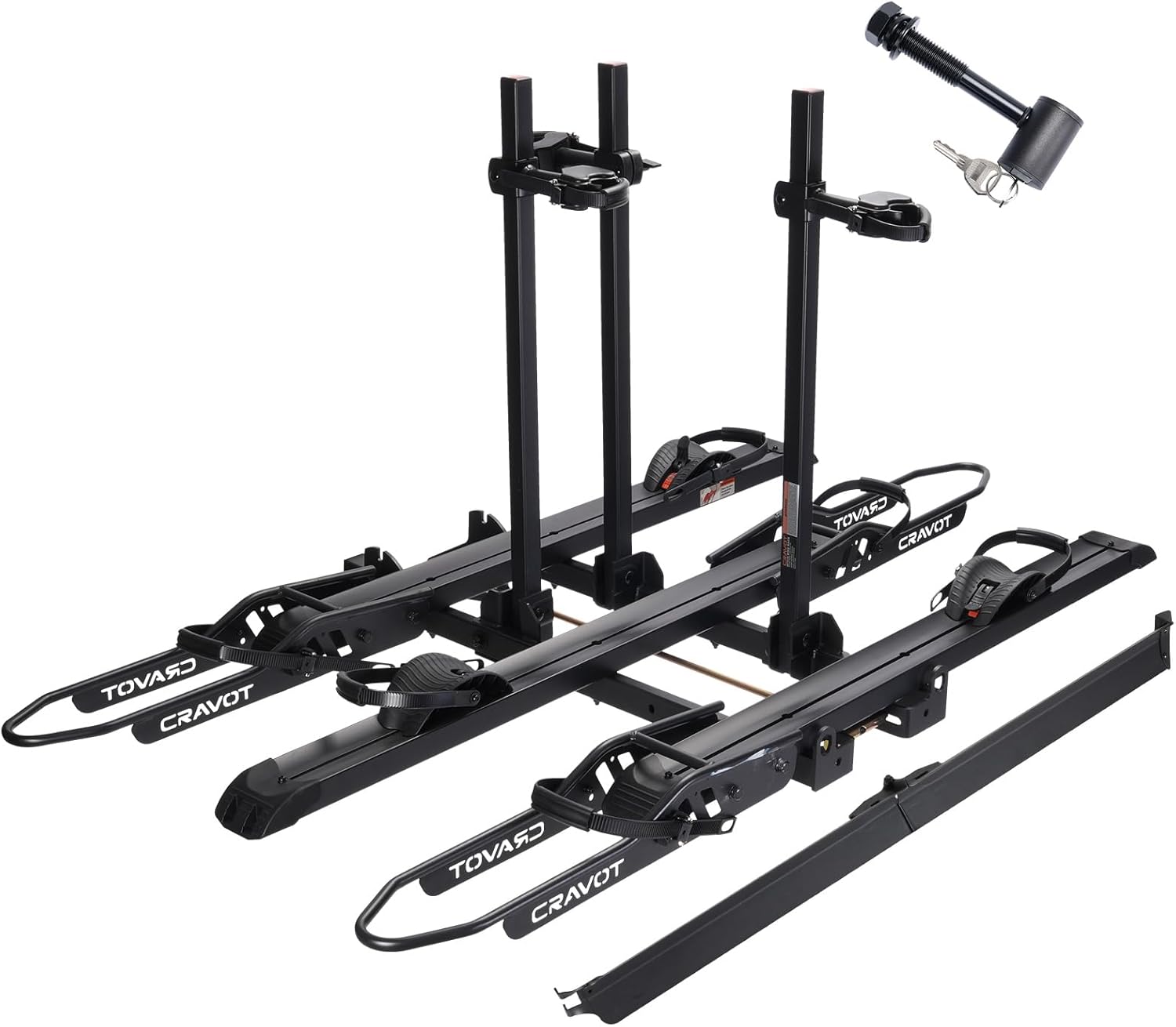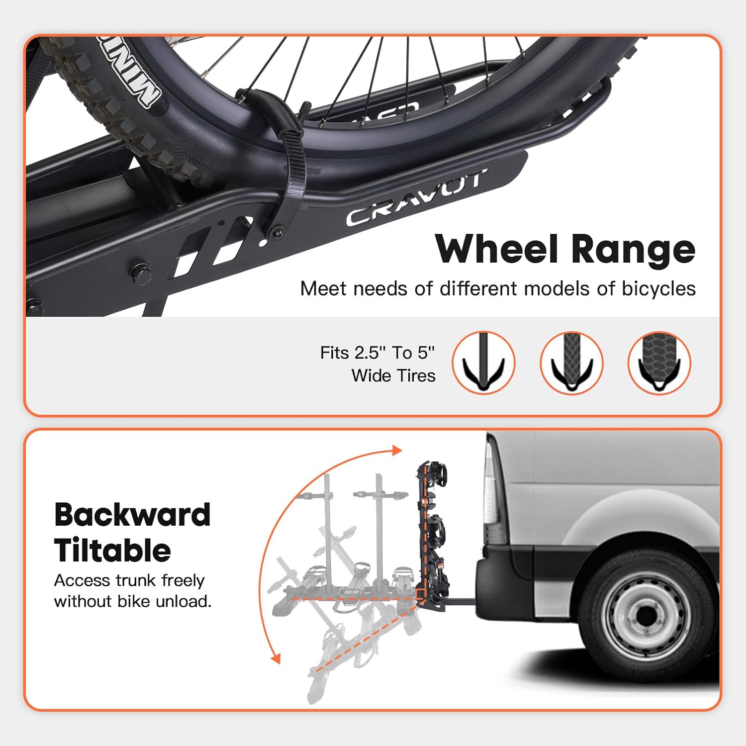 - 300lbs Capacity: CRAVOT heavy ebike rack with a ramp, is possible to hold up to 300lbs in total, or 100lbs per ebike or heavy bike. Fitting any vehicle equipped with a 2-inch receiver and accommodating ebikes up to 5'' wide and with a wheelbase up to 50''.