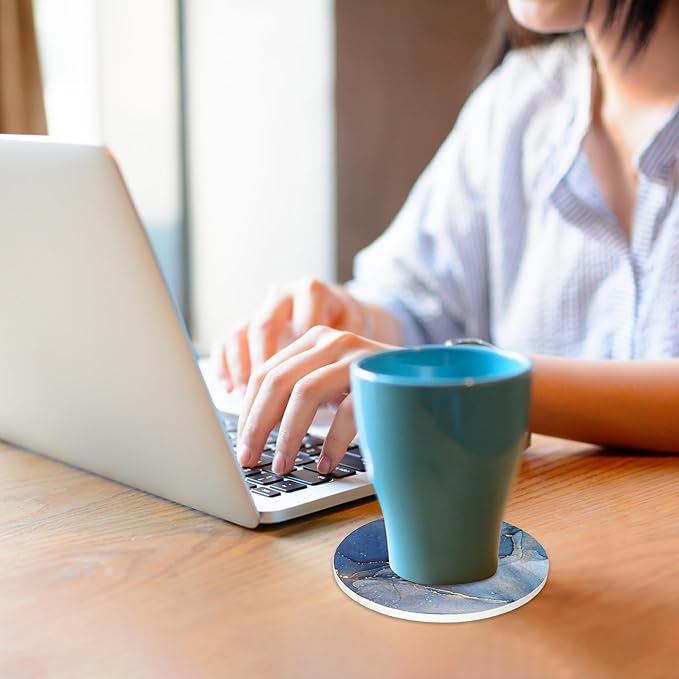 Blue Marble Fluid Set of 6 Coasters for Drinks Absorbing Round Ceramic Stone Coaster with Cork Base,Tabletop Protection Mat for Mugs and Cups,Office,Kitchen