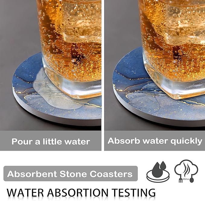 - Superior Absorbency & Protection: Crafted with a cork base, these coasters offer exceptional absorbency, effectively soaking up condensation and spills. The non-slip design protects your surfaces from scratches and ensures your tabletops remain dry and clean, making them ideal for any drink.