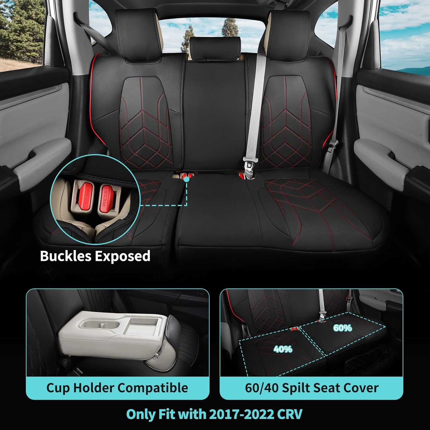 for Honda CRV Seat Covers Custom Fit 2017-2022 EXL EX LX Sport,Touring,Hybrid - Luxury Waterproof Leather Car Seat Covers Full Set - BlackRed