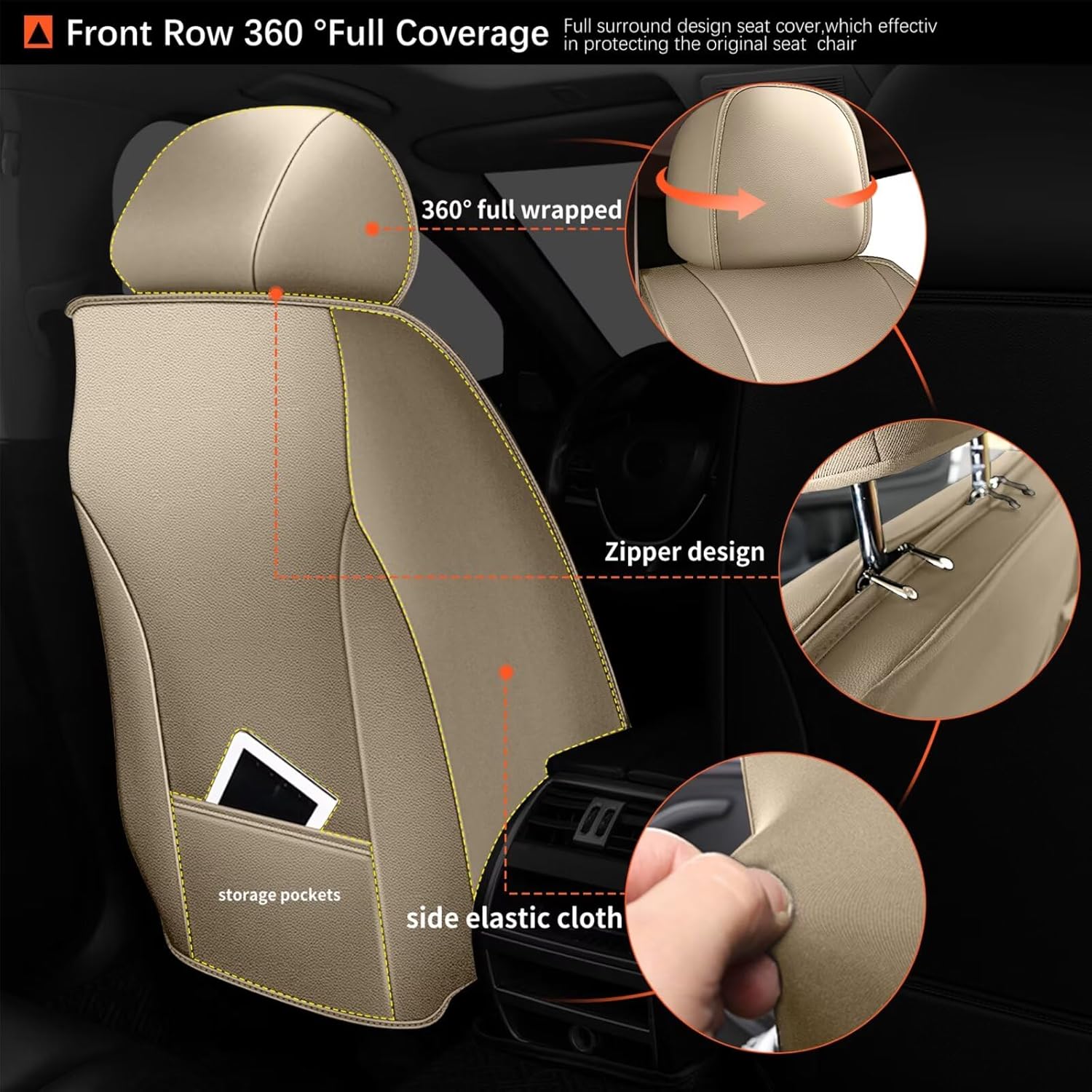 - 🔥🚗【Full Protection】: Our front seat covers are designed to wrap around the seat cushions for a greater protection and better appearance. They are resistant to fading, gentle to touch and the front headrest has 4 zipper, which made for long term use.Convenient storage pocket allow you to store miscellaneous items.