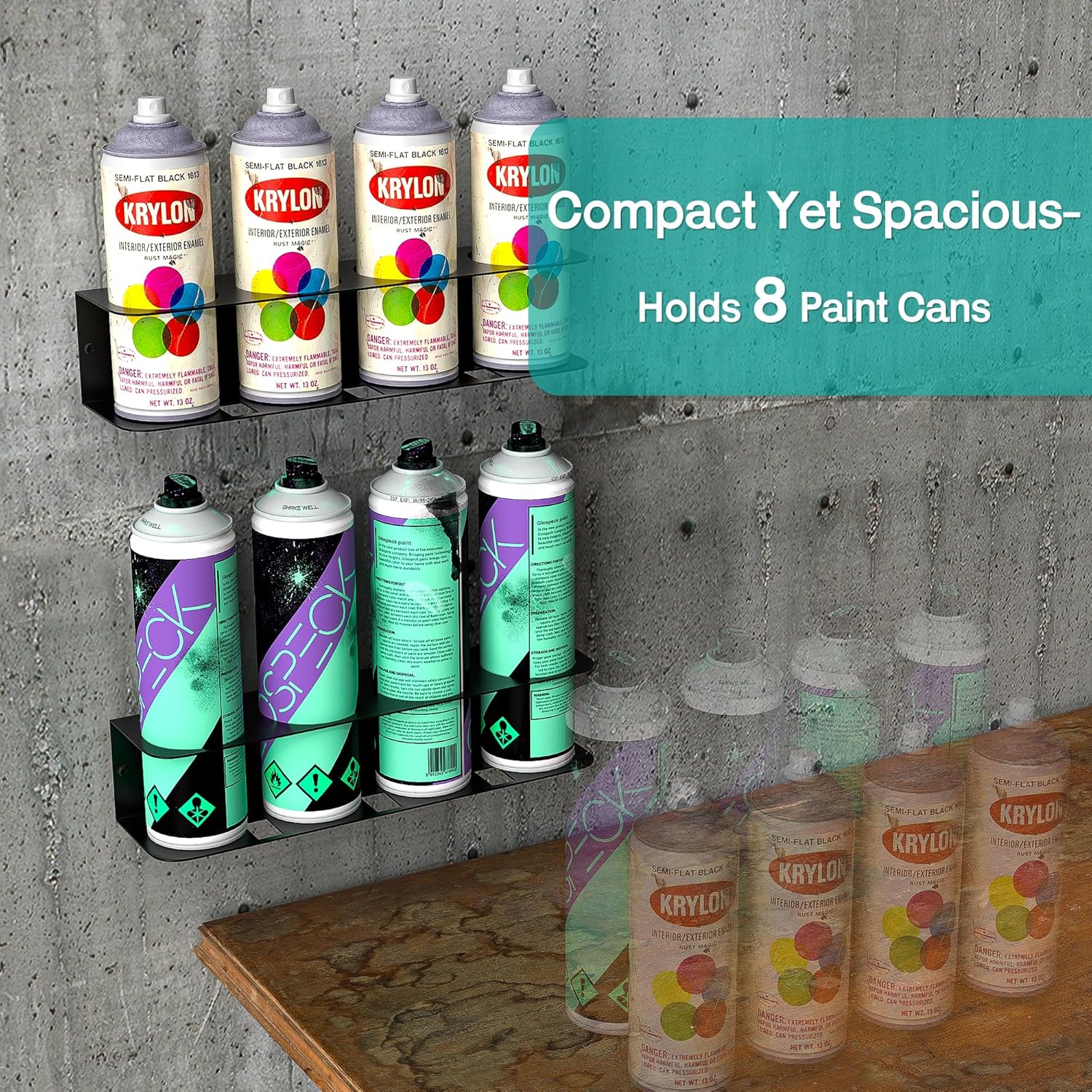 - STAY ORGANIZED: The package includes 2 spray bottle holders, holding up to 8 cans in total, keeping them visible, accessible, and neatly arranged—helping maintain a tidy space, reduce clutter, and boost work efficiency