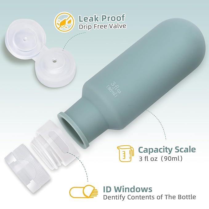 - Leak-proof Design:Leak Proof Silicone Squeezable travel size toiletries prevents liquid leakage or spillage, offers protection to your luggage and cloths.