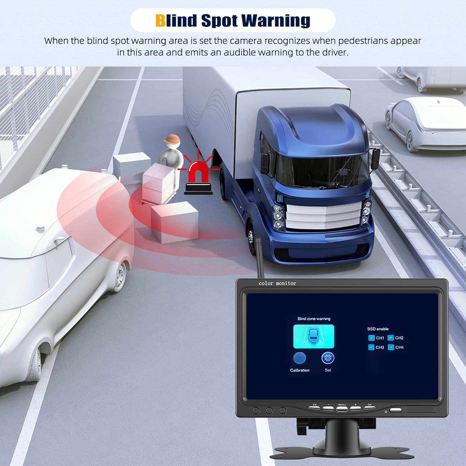 - 【7 Inch Ips Screen & Night Vision】7 Inch reverse camera monitor with 1024*600 IPS screen provides a clear picture, restoring the real-time image of the scene. Wireless reserve backup camera supports supper night version function, providing HD full color images during the day, and black and white image at night