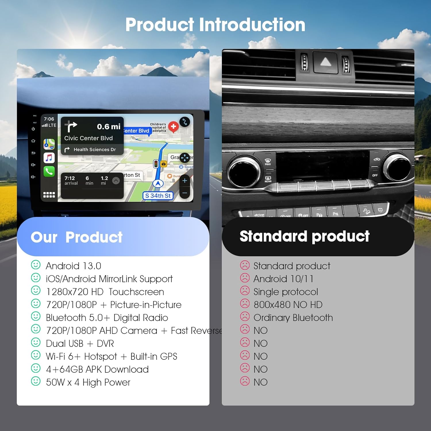 - 【Powerful 50W x 4 Output & GPS Precision】Delivers robust sound for CarPlay entertainment, while built-in GPS and network hotspot support ensure accurate, real-time navigation overlays and traffic updates.Stay connected with Bluetooth 5.0 for hands-free calls, music sharing, and internet tethering,