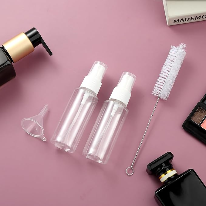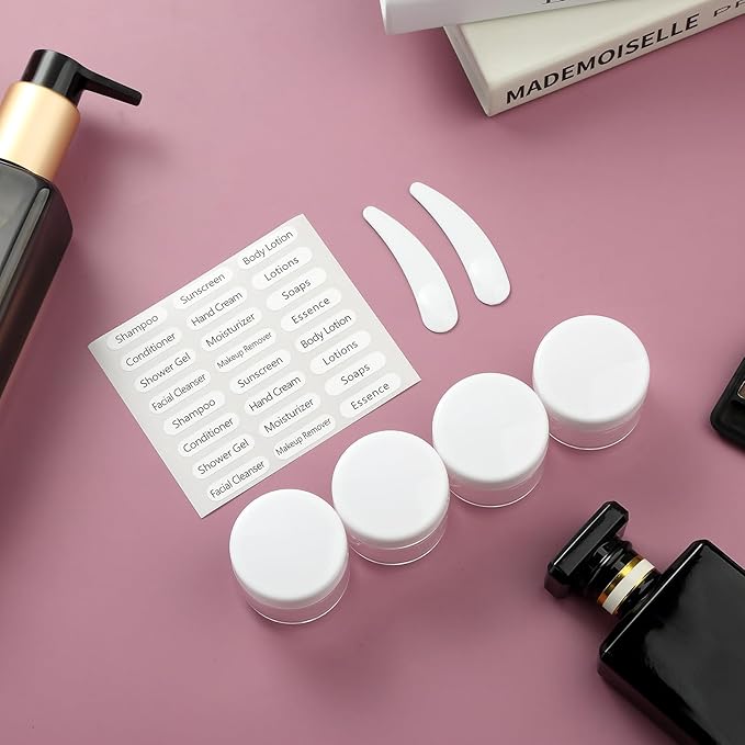 - Useful Travel Accessories: This is a oversize assortment of travel containers in a useful zip case. ( Come in 2 pcs Larege 6oz & 2pcs 3oz Travel Bottles + 4 Travel Jar s+ 2 Spray Bottles + 2 Scoopers + 1 Funnel + 1 Clean Brush + 1 Page Label + 1 Clear Toiletry Bag ) Multiple ones allow you take along different beauty products and toiletries according to your requirement
