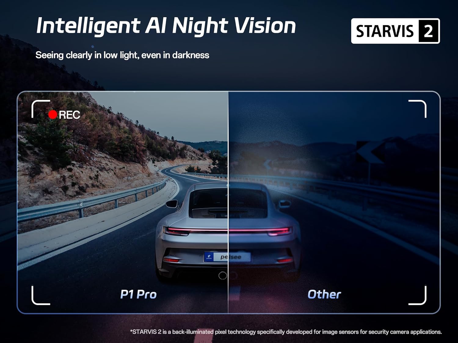Pelsee P1 Pro Dash Cam Front and Rear, STARVIS 2 Sensor, 4K Dual Dash Camera for Cars with Full-Color Night Vision, HDR WDR, ADAS, GPS, WiFi & Voice Control, 24H Parking Mode, 3.39" Screen, 64GB Card