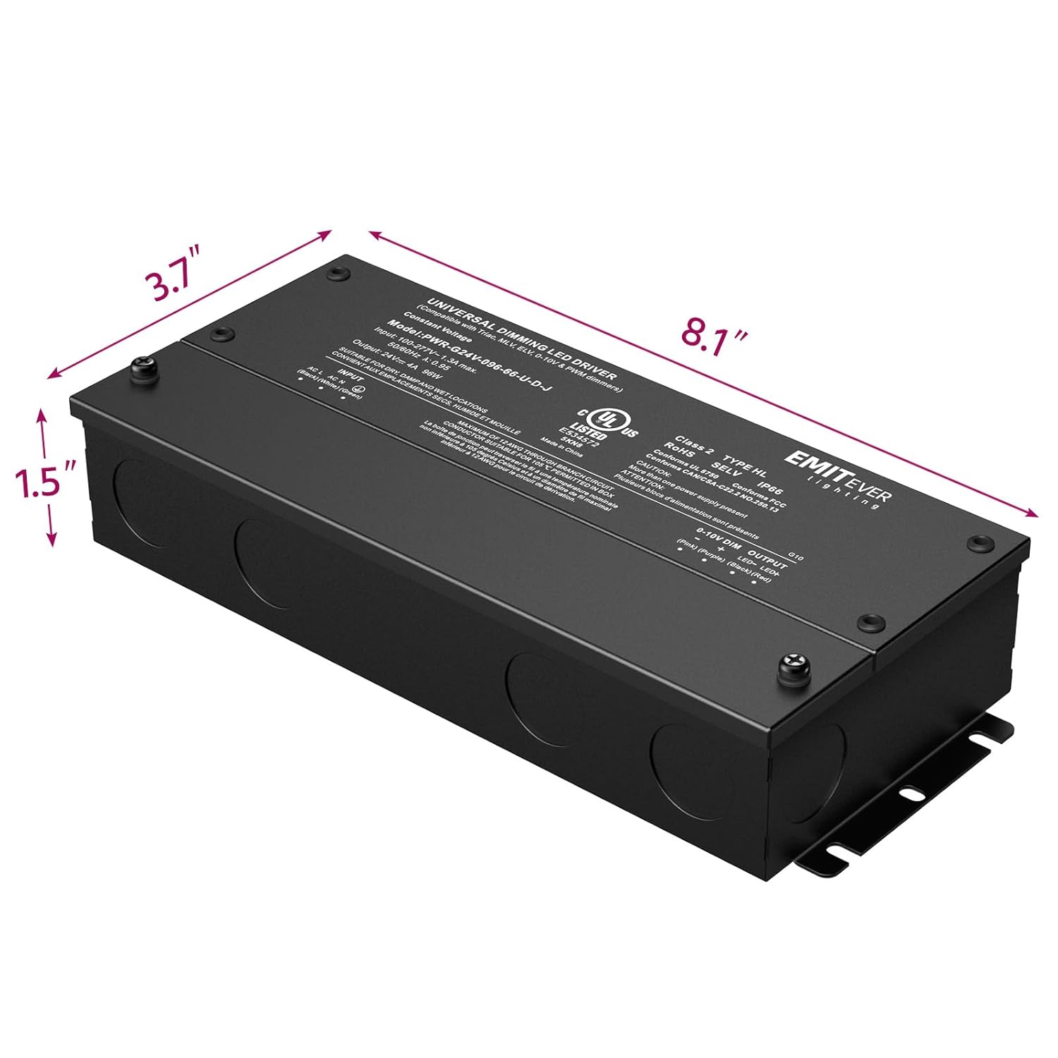 EMITEVER Dimmable Led Driver, 2 Packs 96W AC 110V-277V to DC 24V Transformer, 5-in-1 Dimming: ELV/MLV/TRIAC / 0-10V / 1-10V / 10V PWM/Potentiometer, Waterproof IP67 and UL Listed
