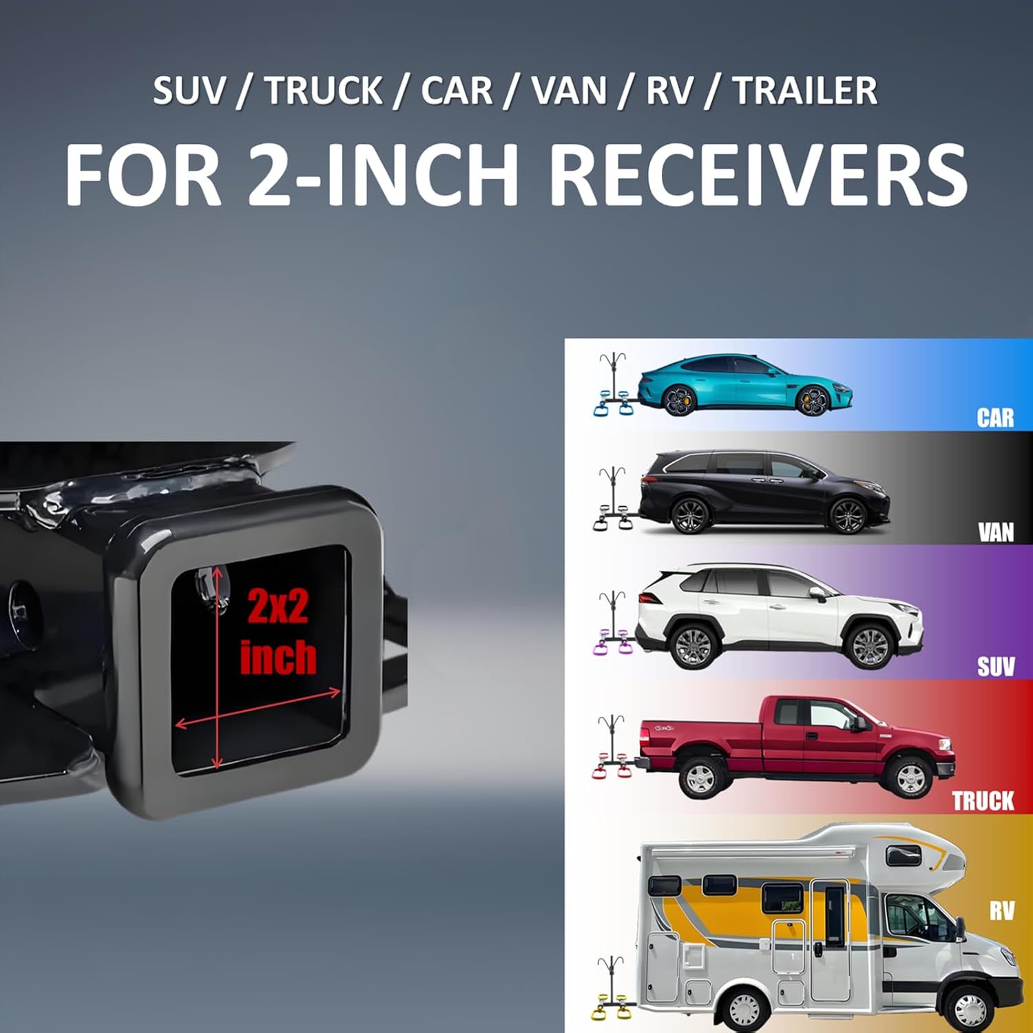- Ease of Use for 2-inch Receiver Vehicles: Easy to set up in minutes with a simple 3-bolt assembly. This bike rack for car is easy to install, remove and store. This 2-bike bicycle car rack is for 2-inch receivers only, best choice of bike rack for truck, SUV, RV and van. It's the go-to choice for travelers, cyclists, and commuters seeking convenience