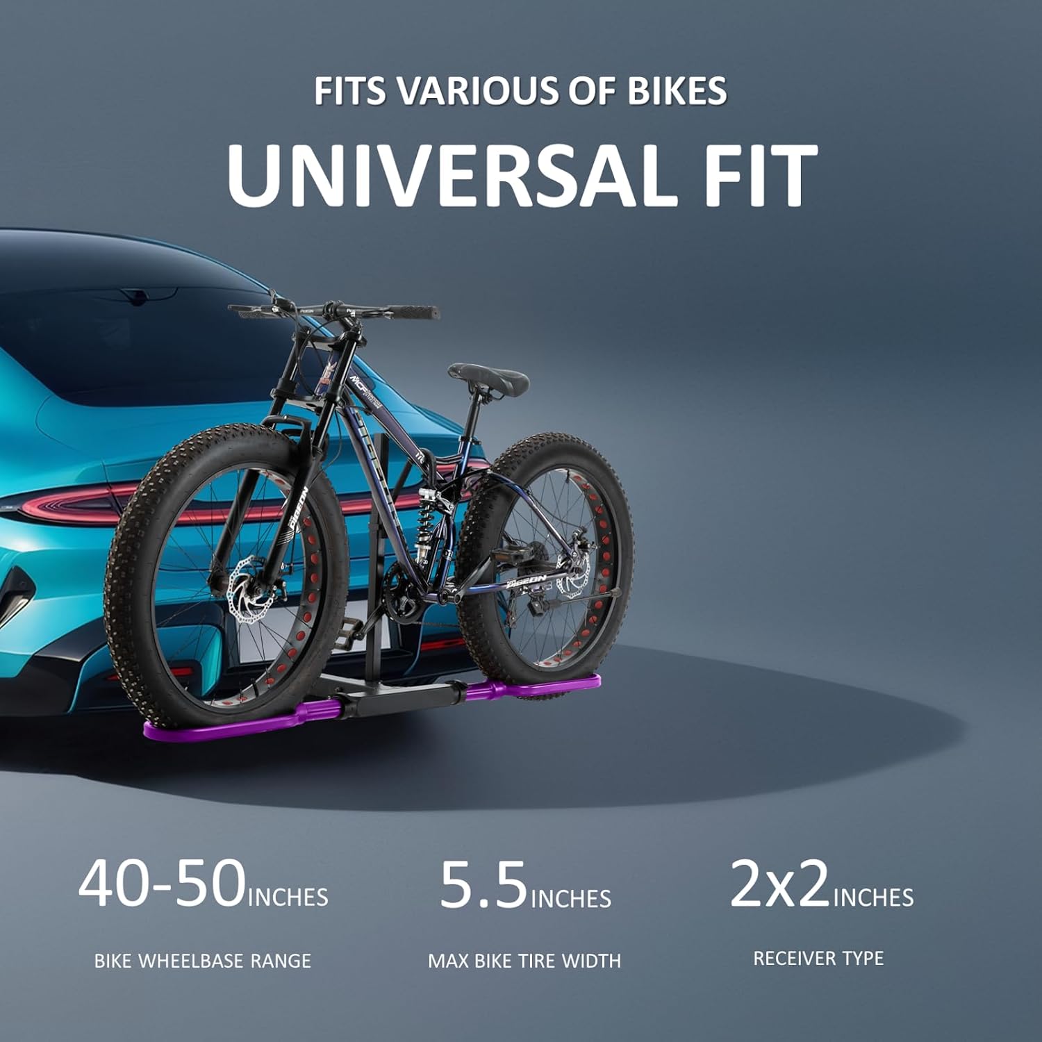 Trailer Hitch Bike Rack for Car 1 Bike, E Bike Carrier Hitch Mount, Fat-Tire Ebike Rack for Tow Hitch, Fits 2" Inch Receiver for SUV Truck Van (1 Bike - 120 Lbs Cap - Purple)