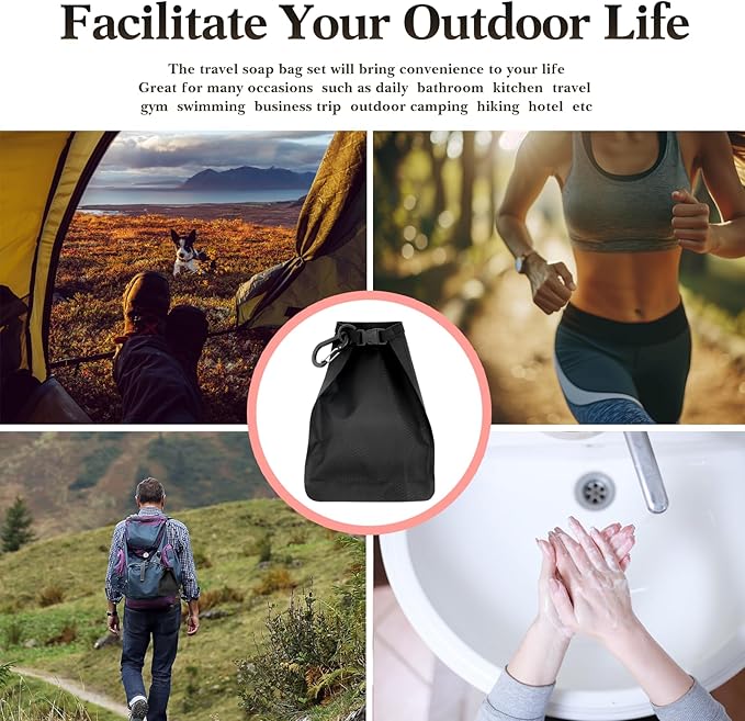 • Quick-Dry Mesh & Carabiner Hook for Easy Access : The breathable mesh soap saver pouch allows soap to dry quickly, eliminating mushiness. The built-in carabiner lets you hang this bar soap travel container on backpacks, showers, or tents for instant access anywhere.