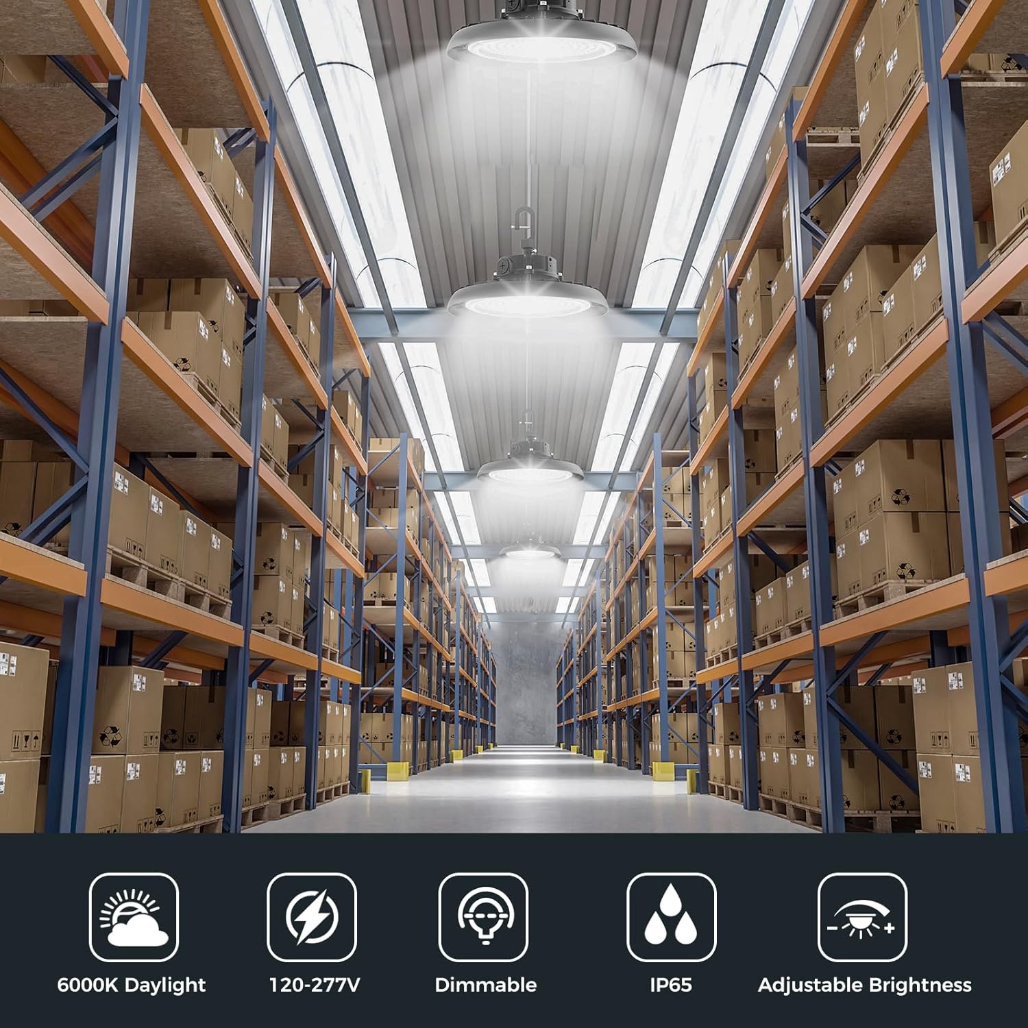 - Ultra-Bright 240W LED High Bay Lights: Our 240W LED high bay lights deliver an impressive 432,000 lumen output at 6000K daylight white, offering three adjustable power modes (240W/190W/140W) to suit any commercial or industrial environment. With 0-10V dimming capability (dimmer switch not included), easily customize the brightness to your needs for eye comfort and energy savings.