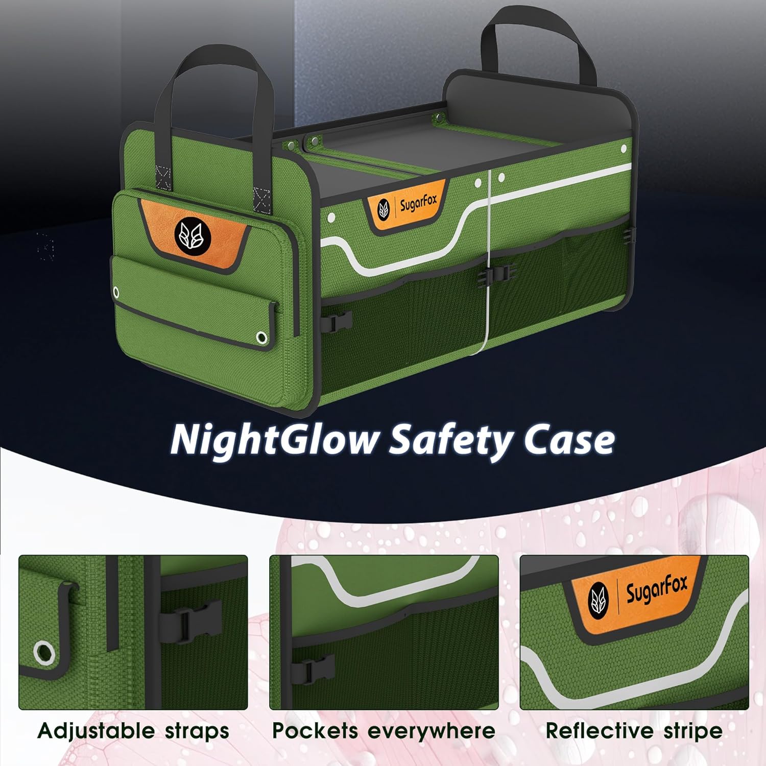 Foldable Waterproof Car Organizer with Non-Slip Traction Rope, 23.2”x13.8”x11.8” Heavy-Duty Trunk Organizer for SUV, Car Essentials List, Portable Vehicle Organizer,GREEN-M003