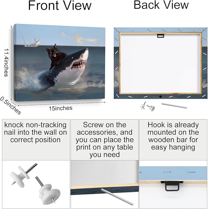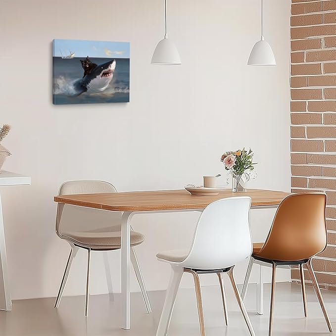 TBT Funny Cat Canvas Wall Art, Funny Quirky Cat and Shark Pictures Canvas Print Animal Lover Gifts Abstract Cats Shark Posters Wall Decor for Living Room Bathroom Kitchen Farmhouse Decor 11.5x15In