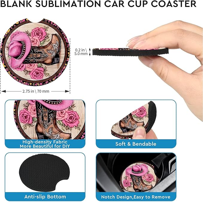 - ✅ Perfect Fit for Any Ride: Measuring 2.75 inches in diameter, these coasters are designed to fit most car cup holders, whether you drive a compact car, SUV, or truck. No more wobbly cups on bumpy roads!