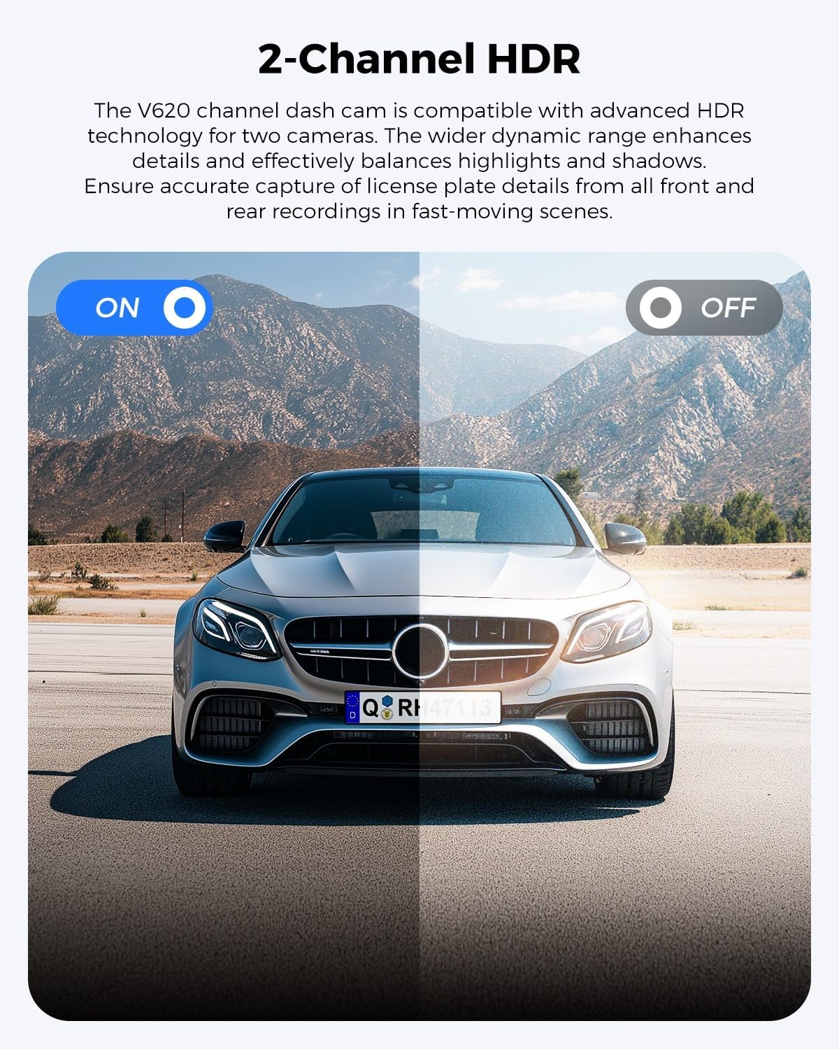 - 【ADVANCED NIGHT VISION】Equipped with an F1.8 large-aperture lens and 6-layer glass optics, along with HDR/WDR technology, the dash cam delivers sharp, balanced video even in low-light or high-contrast conditions.