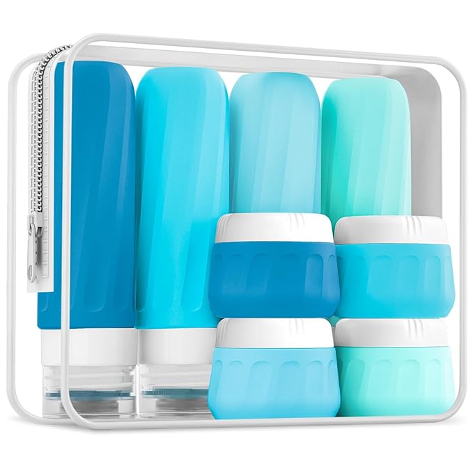 Travel Bottles for Toiletries, Travel Size Toiletries 10 Pack, Tsa Approved Travel Size Containers 3oz, with Travel Essentials Clear Bag, Leak Proof Silicone Squeezable Creams Jars