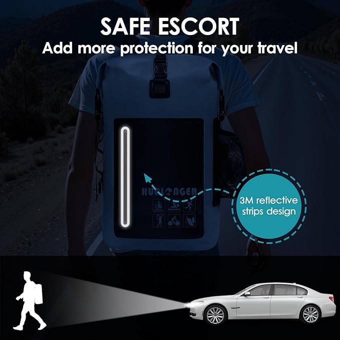 - Dry Bag Backpack: Features a front zippered pocket with reflective strips for easy access to small items and enhanced safety in low light. Includes side hooks and a water bottle pocket. The smooth surface is easy to clean—just rinse and wipe after use. Perfect for hiking, camping, or beach trips