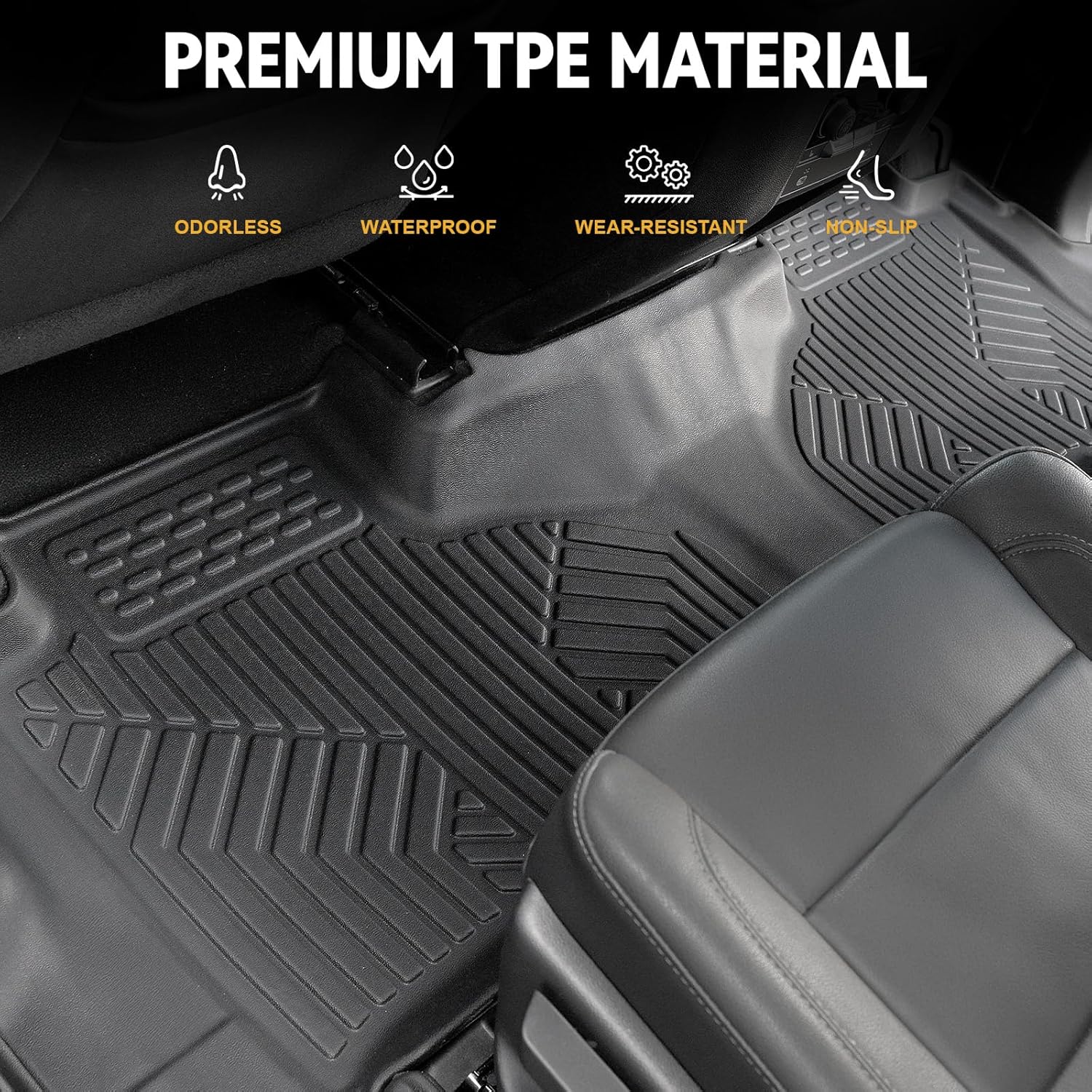 - All-weather TPE Material: 100% odorless, BPA Free and providing complete safety for your family while minimizing environmental impact. These flexible car mats full set feature water-resistant performance backed by marine-grade durability that withstands heavy daily use
