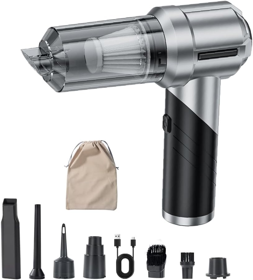 - [4-in-1 Multifunctional Handheld Vacuum]- The handheld vacuum cordless comes with kinds of accessories, which meets various daily cleaning needs, like vacuuming, inflating , blowing and vacuum pumping. As a vacuum cleaner, it can easily pick up dirt and debris in your car, office and even some small corners in the house. As a air duster, it can blow away residual dust from surfaces like computer keyboards and camera lenses. As an air blower, it can inflatable itmes like swimming rings. Equipped with multi-functional accessories to make the product suitable for a variety of occasions.