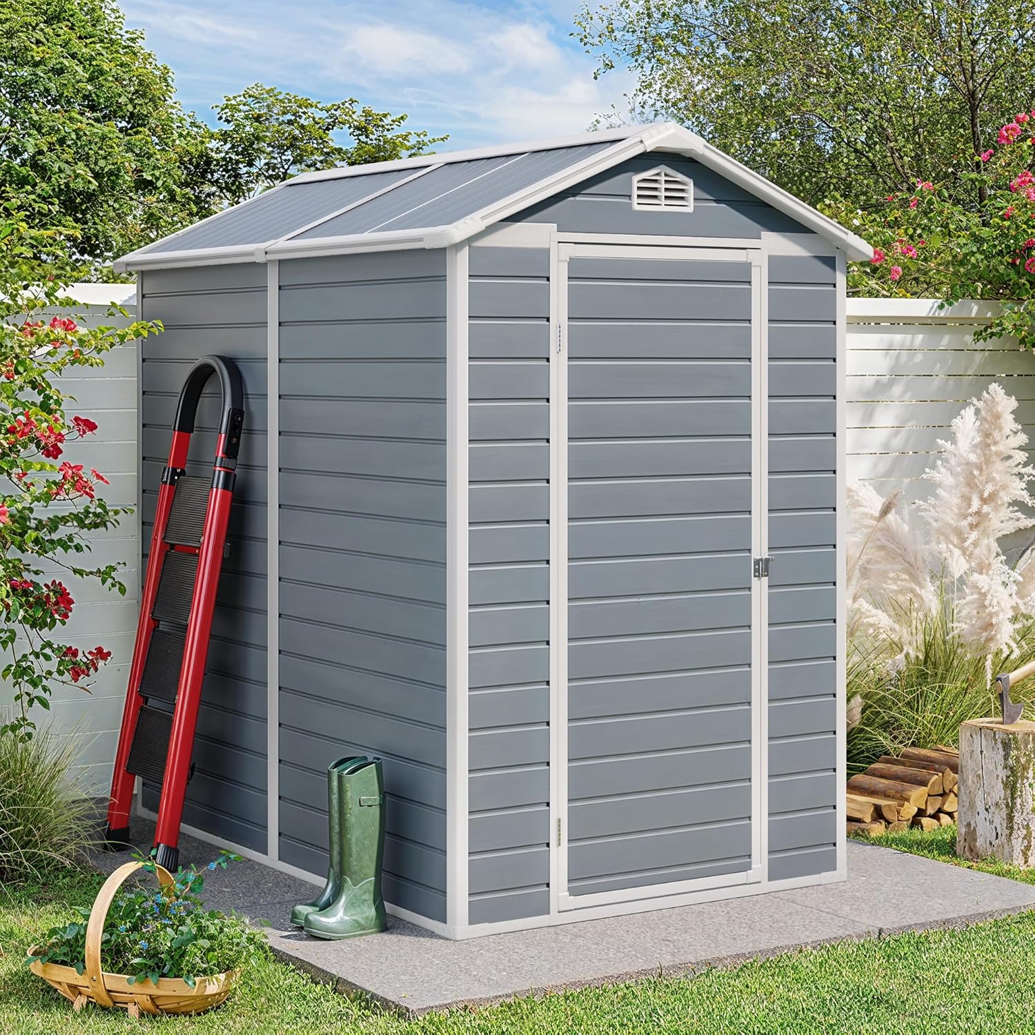 Gizoon 6x4 FT Outdoor Storage Shed with Floor, Resin Garden Tool Shed with Lockable Doors, Window, Vents, Reinforced Steel Frame, Waterproof Plastic Storage Sheds for Backyard, Patio, Lawn