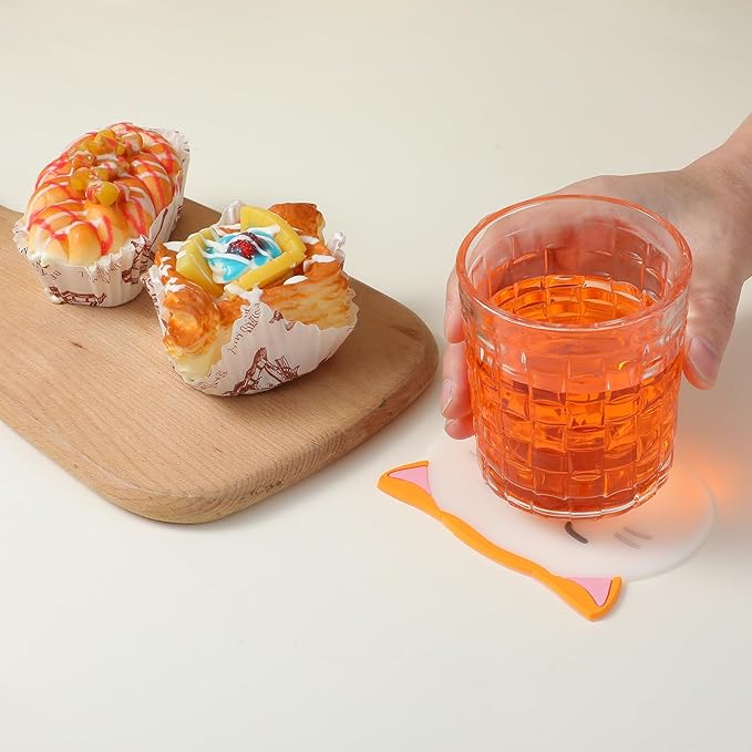 - Adorable Cat Design: These funny cat coasters feature a cute and colorful design, perfect for adding a touch of whimsy to your desk decorations or coffee table decor