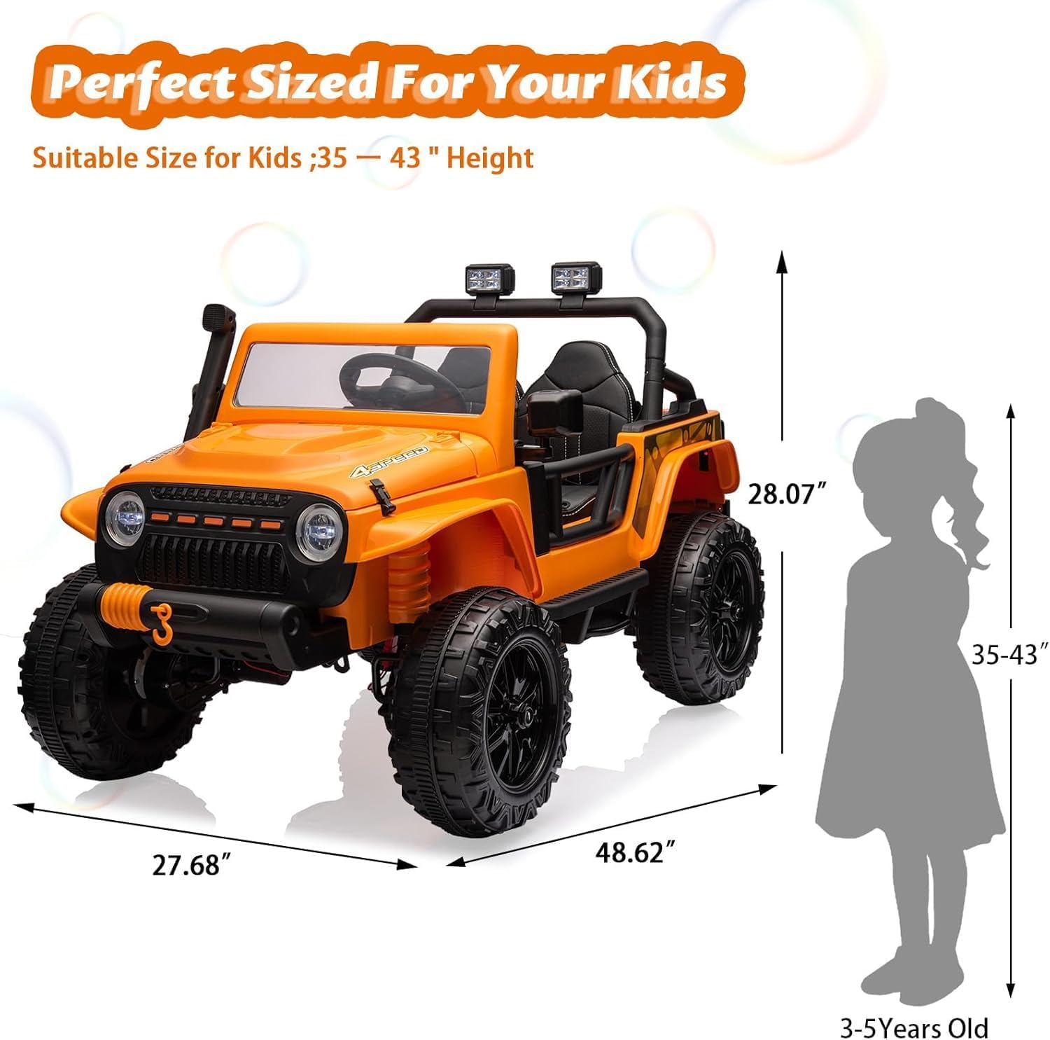 - 【4x55W Powerful Motors & 2-seater】Our truck is a powerful 24V two-seater car and the Max Load is 220 LBS. The large two-seater design can easily accommodate 2 kids under 4 years or only one older kid(37-96 months) to drive. And we've upgraded to 4X55W powerful motors in our new model, which can provide stronger and more stable power to the car, complemented by a more durable battery to reduce failures and ensure an optimal performance.