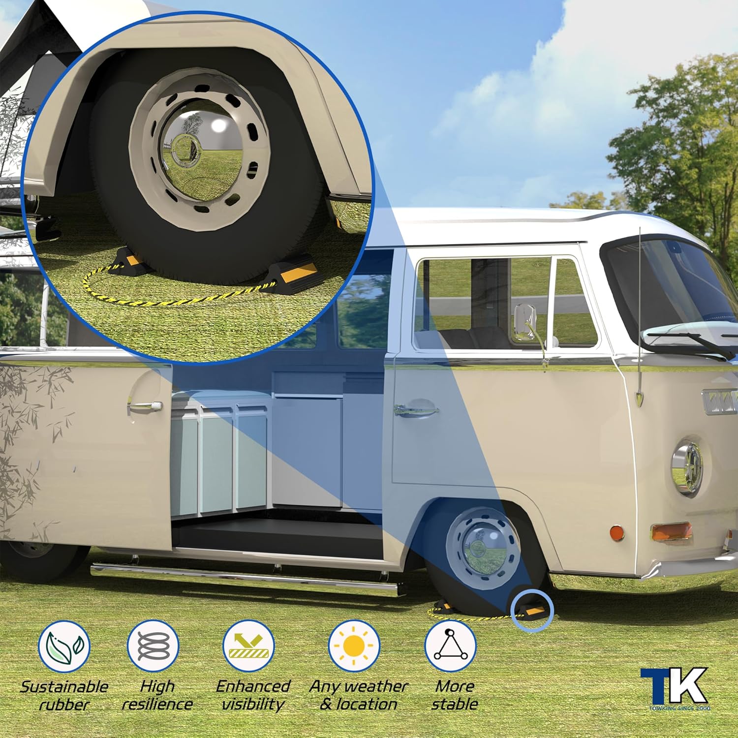 Heavy Duty Rubber Wheel Chock, Non-Slip Tire Stopper with Durable Nylon Rope, for Cars, Trucks, RVs, and Aircraft, 2 Pairs