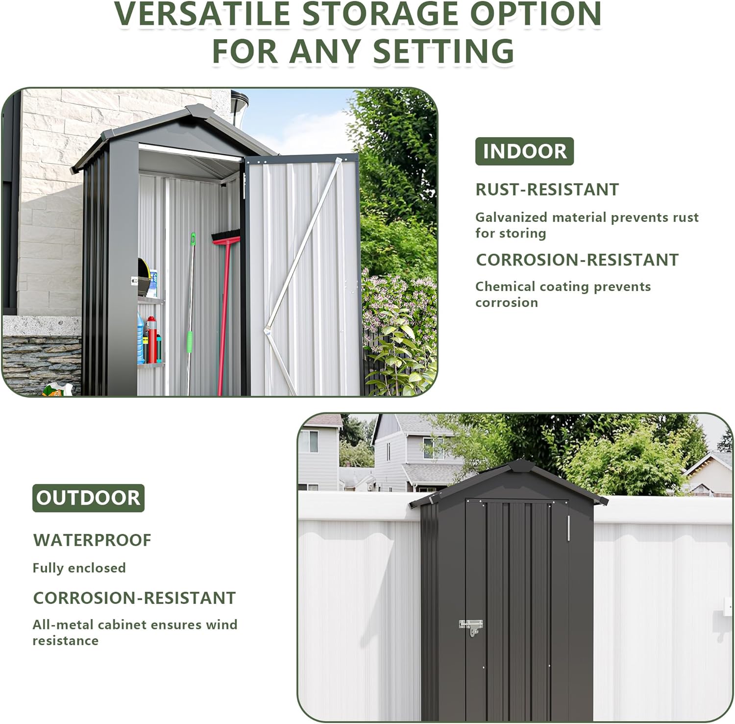 - 🏡𝐀𝐥𝐥-𝐰𝐞𝐚𝐭𝐡𝐞𝐫 𝐒𝐭𝐨𝐫𝐚𝐠𝐞 𝐒𝐡𝐞𝐝: This small outdoor storage shed 2.5x1.4 is crafted from high-quality galvanized steel, offering excellent rust resistance and stability. Even when exposed to prolonged sun and rain, it maintains a like-new appearance and outlasts ordinary outdoor storage cabinet. Its unique waterproof design lets you safely store office supplies, cleaning tools, and outdoor equipment without worry of moisture or damage