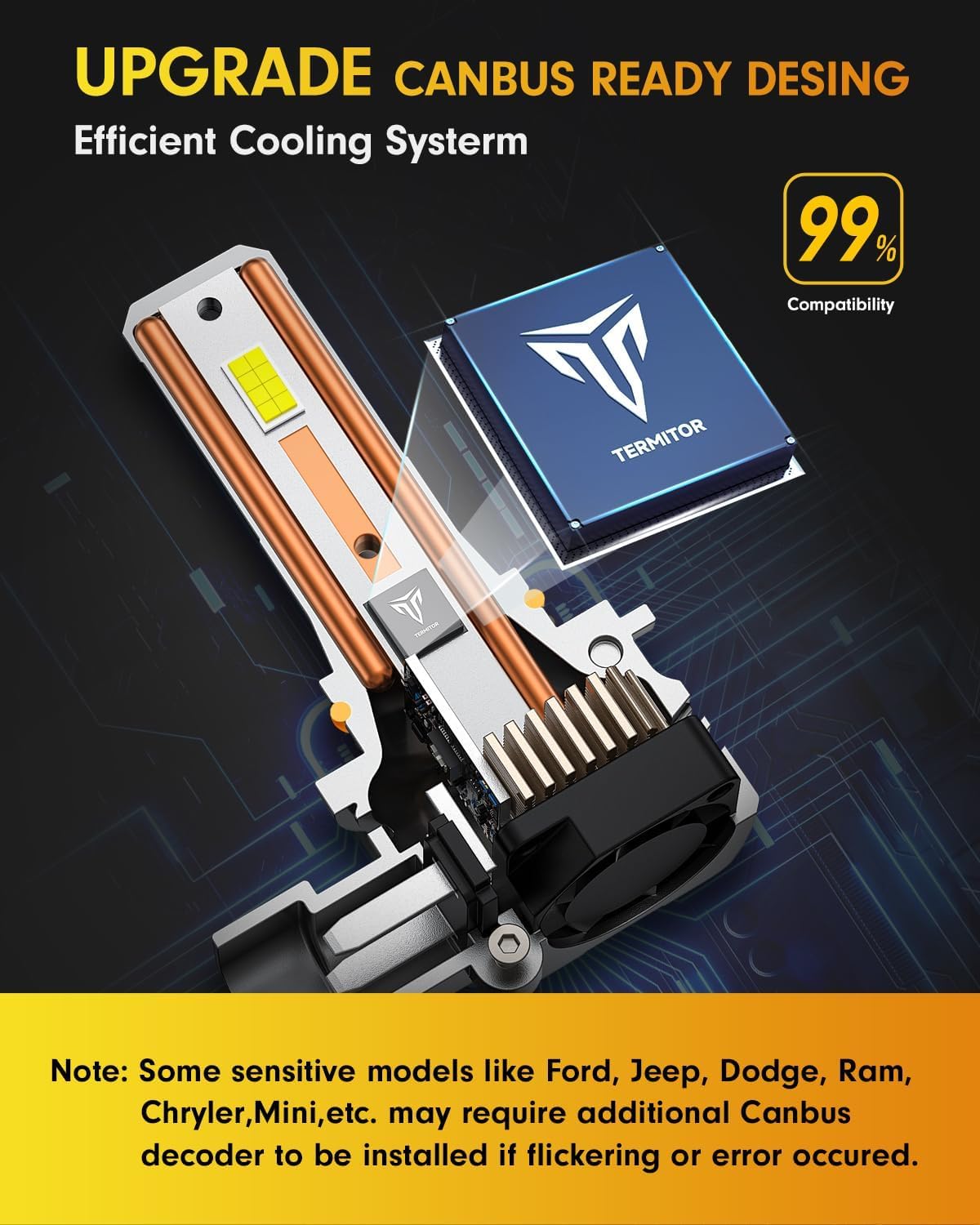 - Efficient Thermal Management Combined with silent high-speed fans rotating at 18,000 RPM, for rapid heat dissipation and ideal operating temperatures. The headlight modification kit and/or headlight components used for road vehicles must comply with federal motor vehicle safety standards, prevents overheating, and extends service life.
