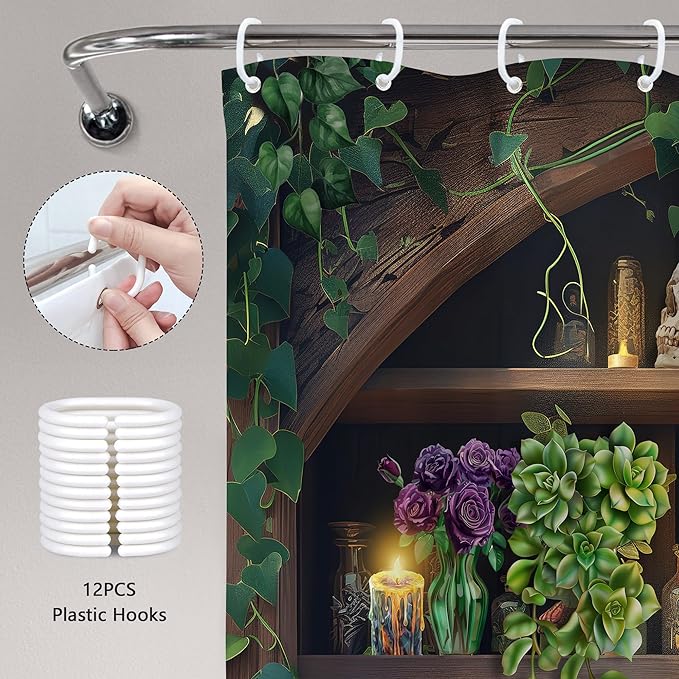 Small Stall Gothic Skull Shower Curtain 54Wx78H RV Spooky Wizard Vintage Withcy Black Bookshelf Succulent Unique Cool Bathroom Decor Mysterious Bath Curtain Fabric Polyester 12 Pack Hooks