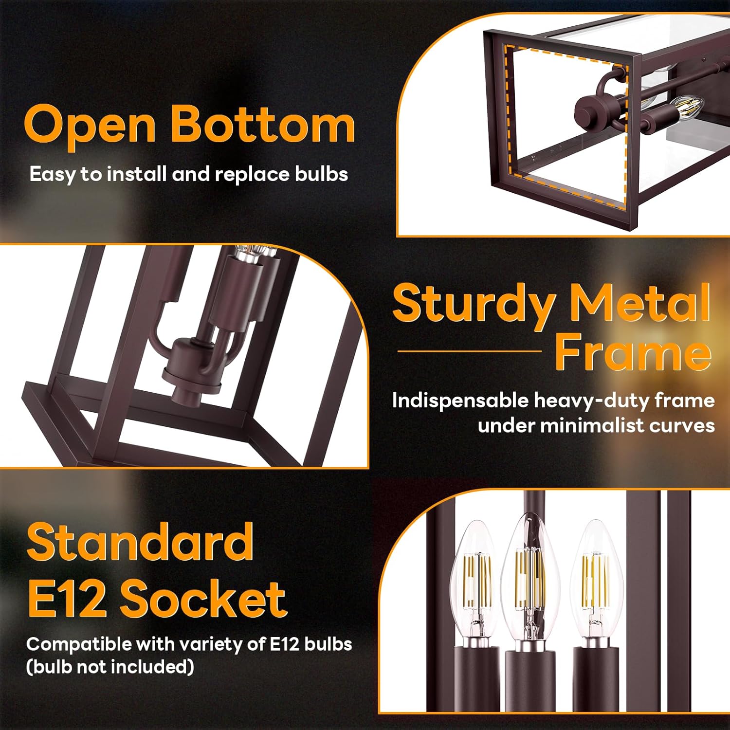 - 【Extraordinary Exterior Lanterns for House】Why choose our outdoor sconce lamps wall mounted? The stunning tiered rooftop head design, elegant oil rubbed bronze finish, clear glass and the clean rectangular lines design will elevate your home. Our large brown outdoor wall lights for house blend modern and traditional aesthetics seamlessly. The open bottom design enables easy bulb replacement without disassembling wall lantern lights for porch. Providing a stylish while functional lighting solution for your home.