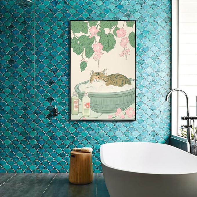 - Cat Artwork: The cute cat wall art features playful and unique illustrations, and its comical cat design brings a relaxed and pleasant atmosphere to your bathroom space.