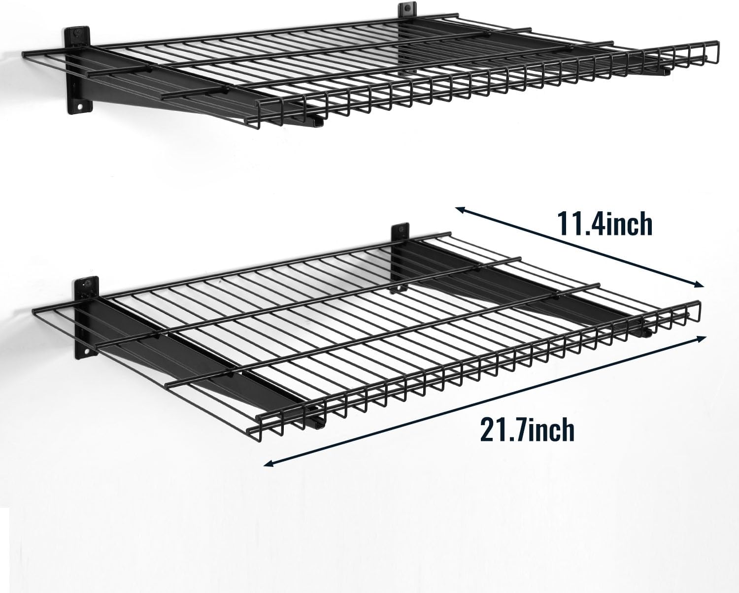 2 Pack Garage Wall Mounted Shelf, 21.7" x 11.4" Heavy Duty Wall Storage Shelves for Garage, Workshop, Laundry Room and Kitchen, Max Load 50 lbs (Black,2 Pack)