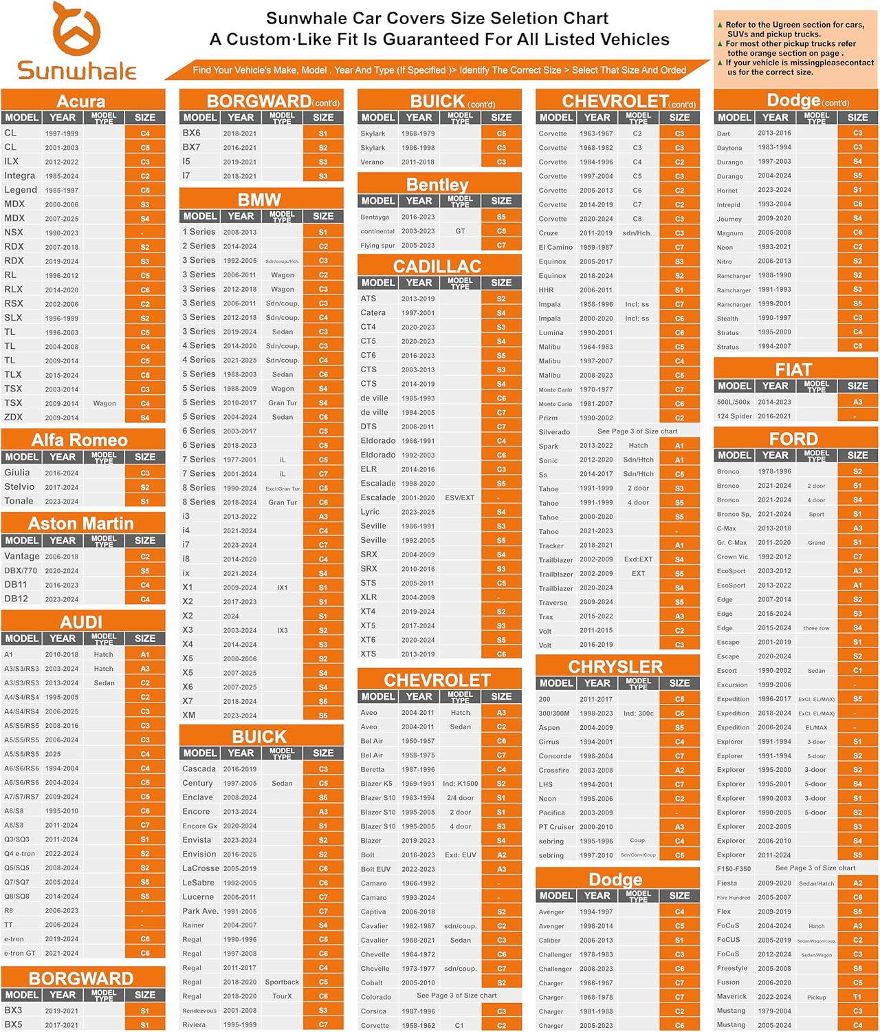 - Precision Fit for Maximum Protection: Sunwhale Car Covers offer a precision fit for every vehicle listed in our size chart, ensuring the best possible protection against the elements.Size :185x70x59 inch fit most sedan Honda Toyota Nissan Audi Volkswagen BMW Kia Chevy Cobalt etc . Please Measure Your Car's Length First.(See the Size Chart in images )