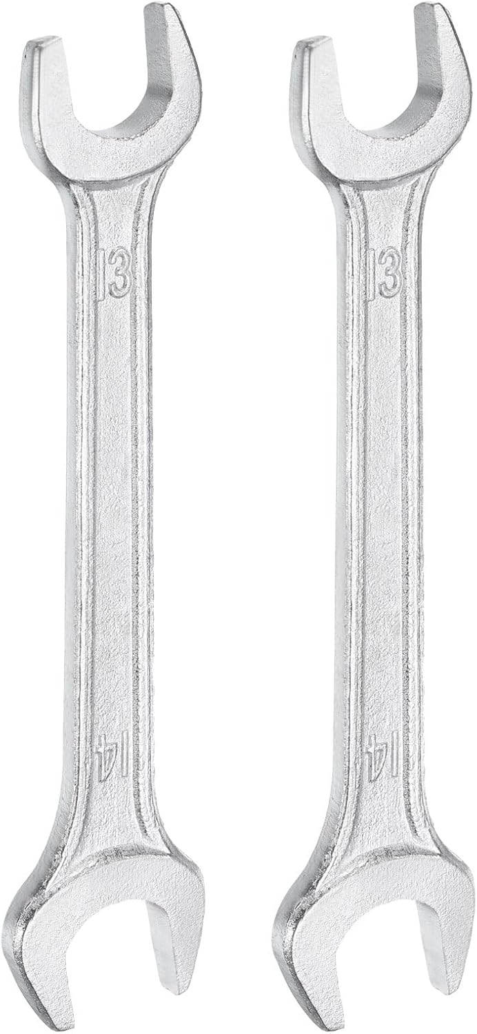 HARFINGTON 2pcs Double Open End Wrench 13mm x 14mm Metric 15 Degree Offset Angle Small Flat Head Wrench Galvanizing Open Ended Spanner for Automotive Repair Furniture Assembly