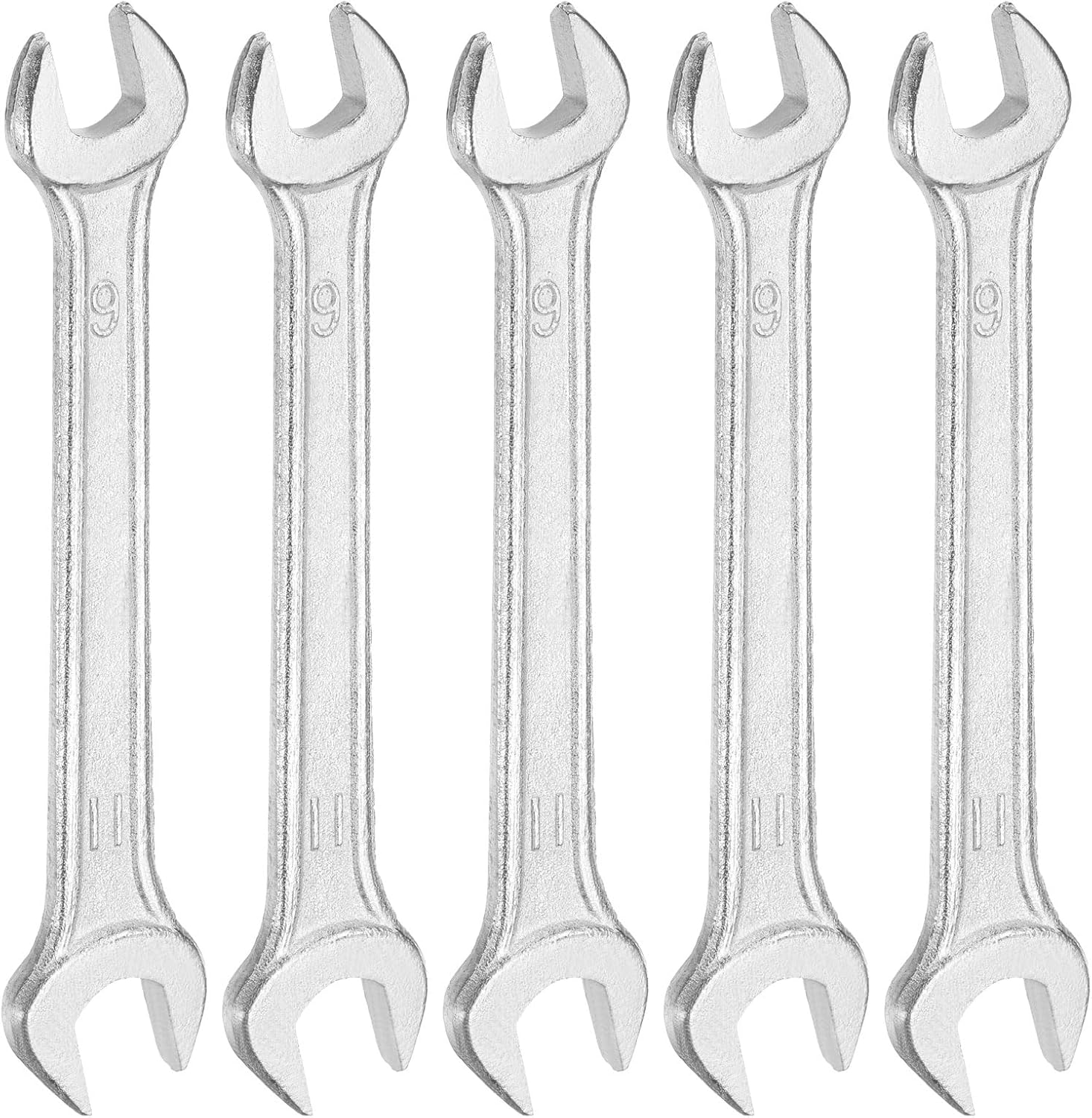 HARFINGTON 5pcs Double Open End Wrench 9mm x 11mm Metric 15 Degree Offset Angle Small Flat Head Wrench Galvanizing Open Ended Spanner for Automotive Repair Furniture Assembly