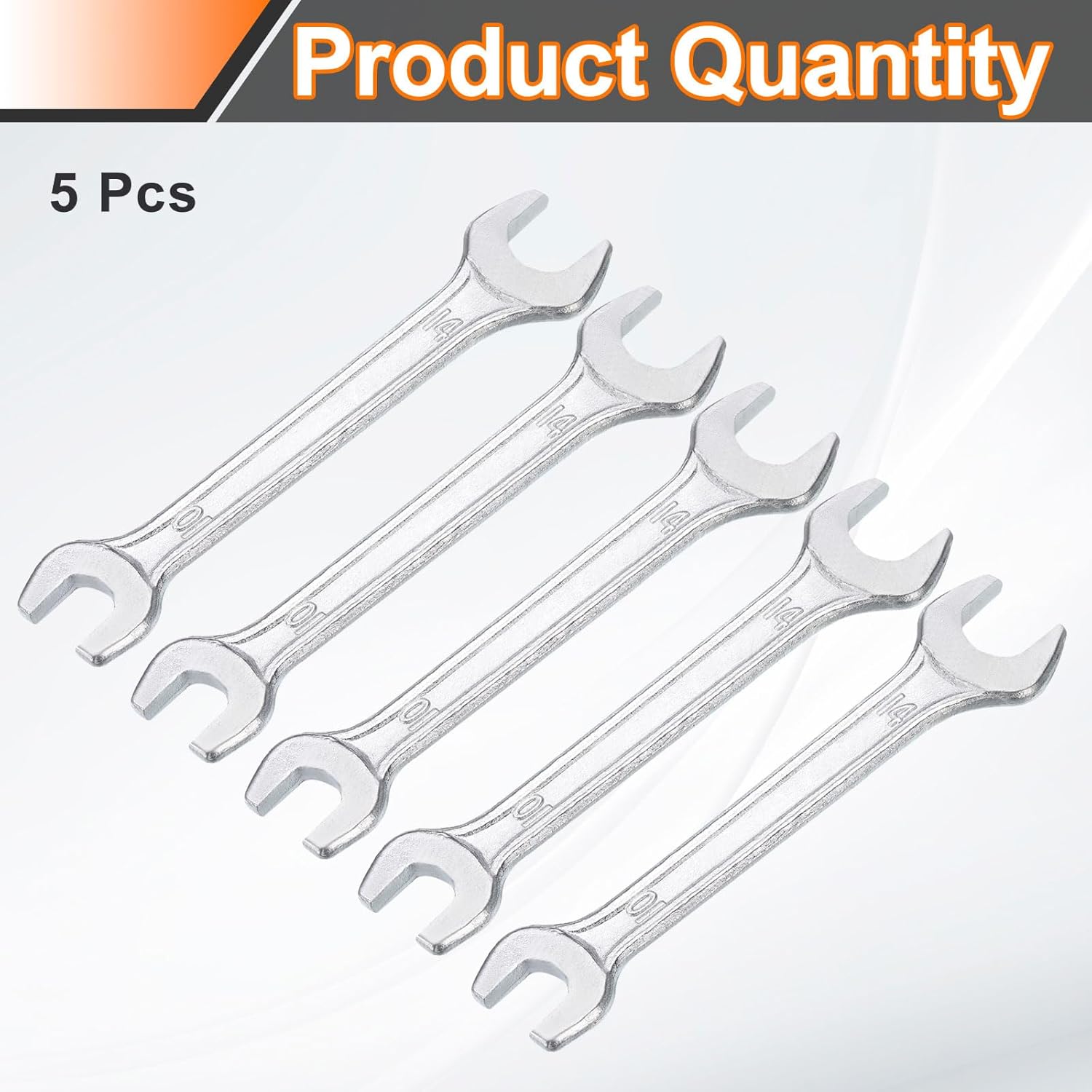 HARFINGTON 5pcs Double Open End Wrench 10mm x 14mm Metric 15 Degree Offset Angle Small Flat Head Wrench Galvanizing Open Ended Spanner for Automotive Repair Furniture Assembly